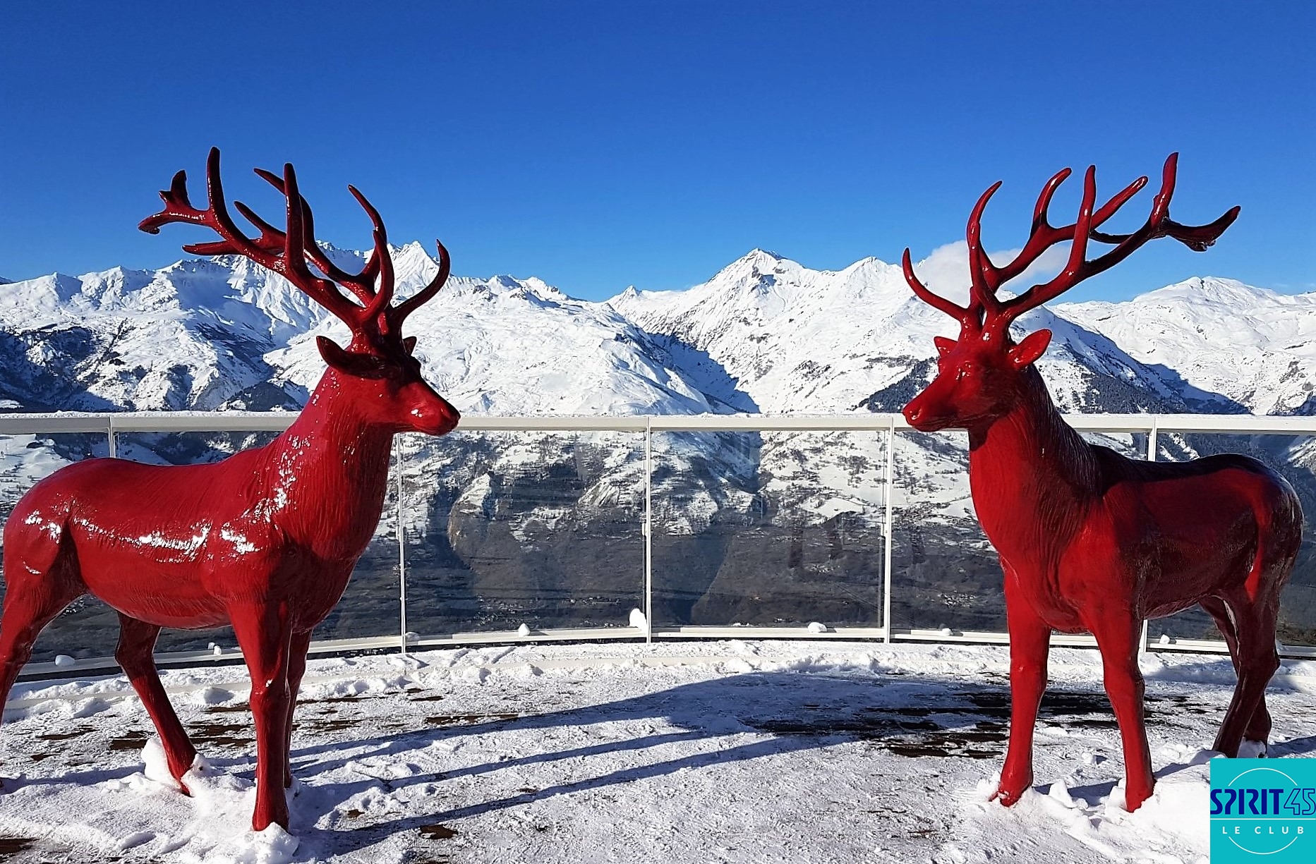 Cerfs rouges sur fond bleu